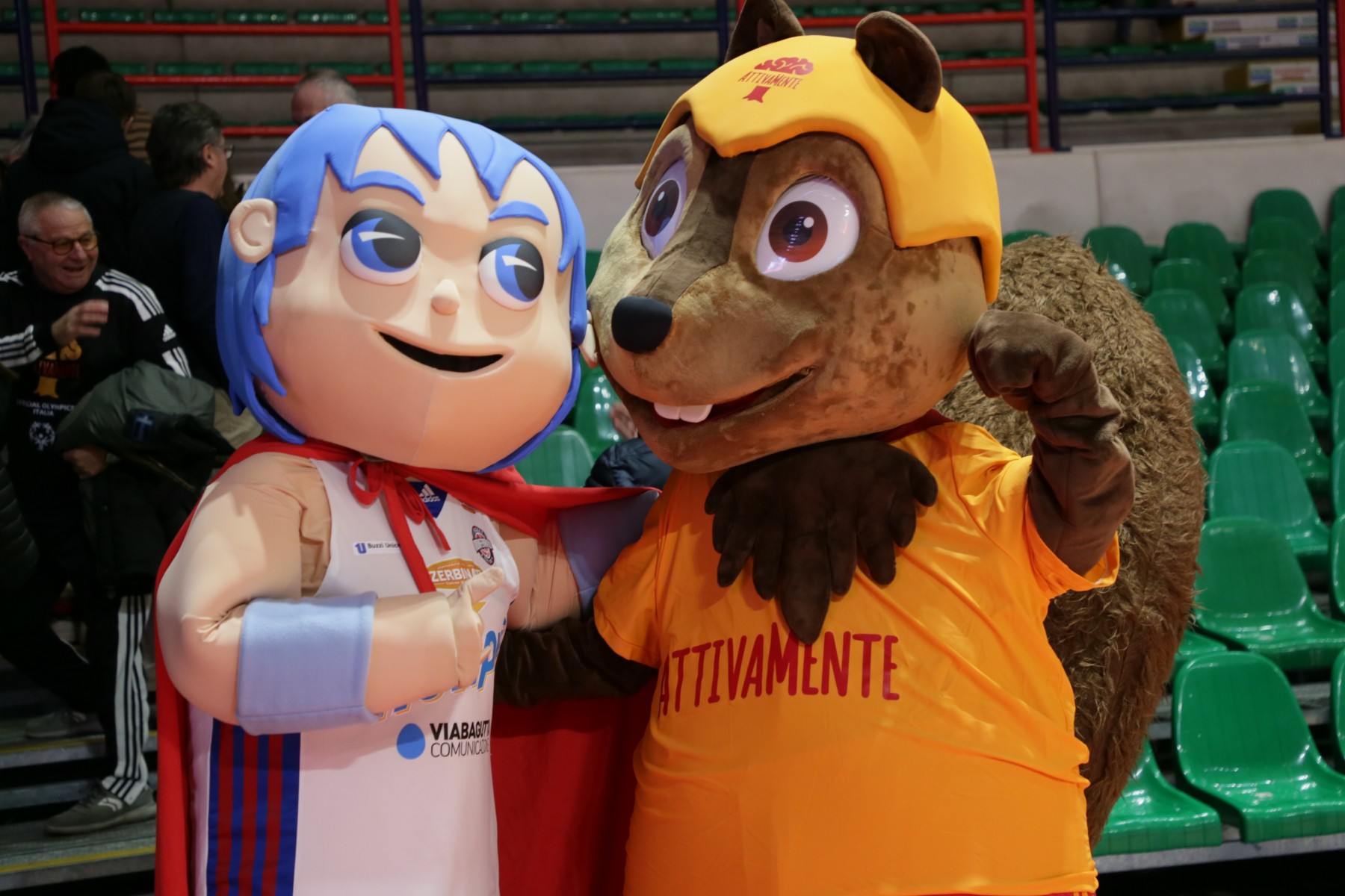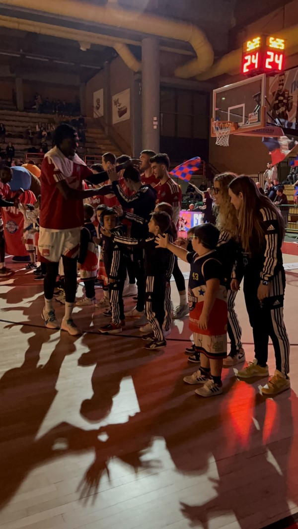 Una delegazione di atleti di AttivaMente, con i tecnici volontari dell'associazione, hanno infatti accolto l'ingresso sul parquet dei giocatori rossublù.